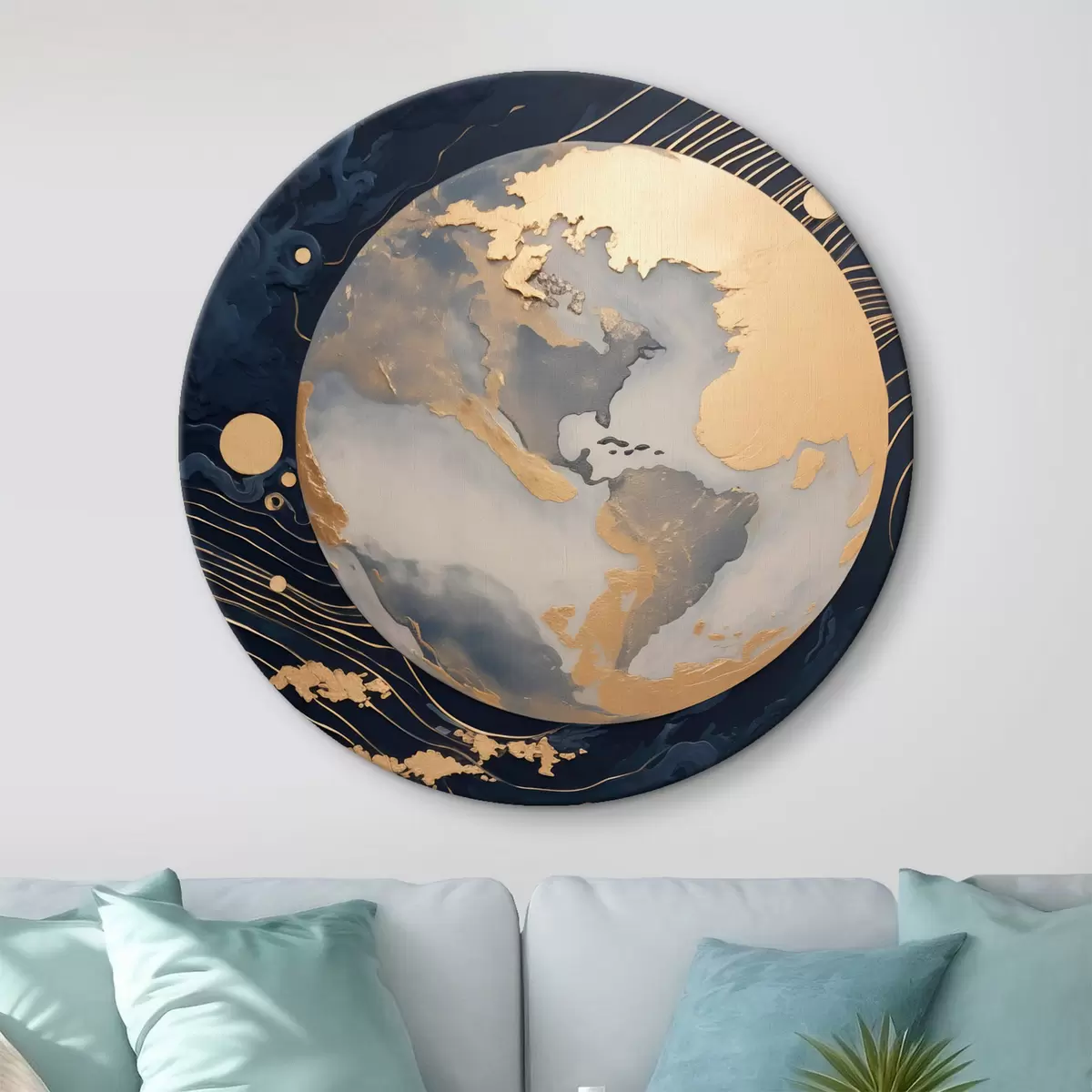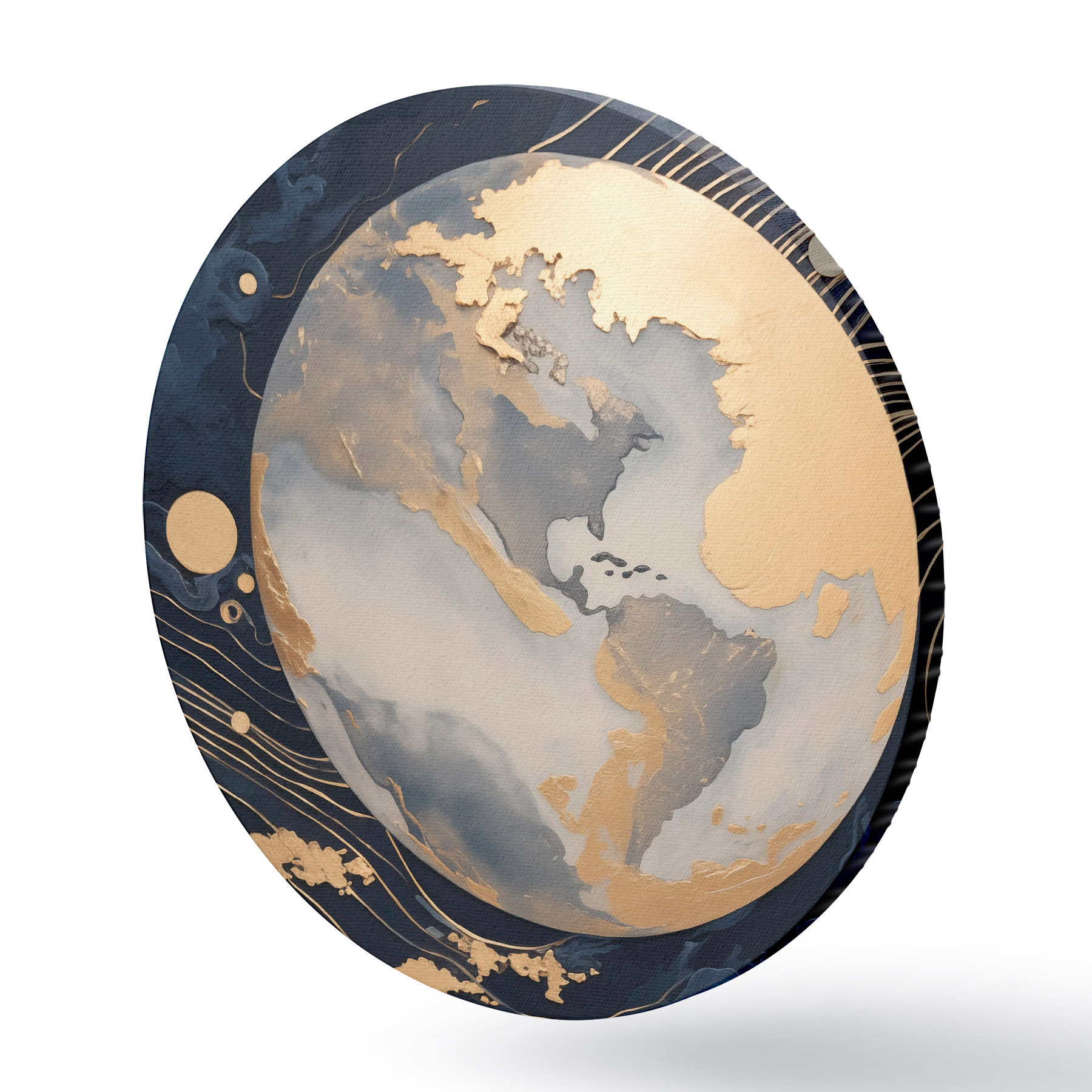 Pilt Tekstuuriga dekoratiivne planeet kollaste joontega taustal, kollaste punktidega taustal, tume taust Nr r46708