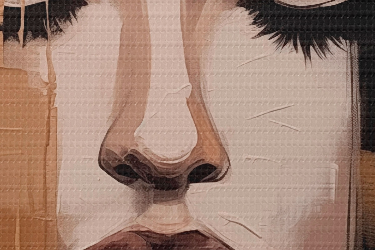 Selle lõuendi peenike niidipunus meenutab professionaalse kunstniku lõuendi pinda.