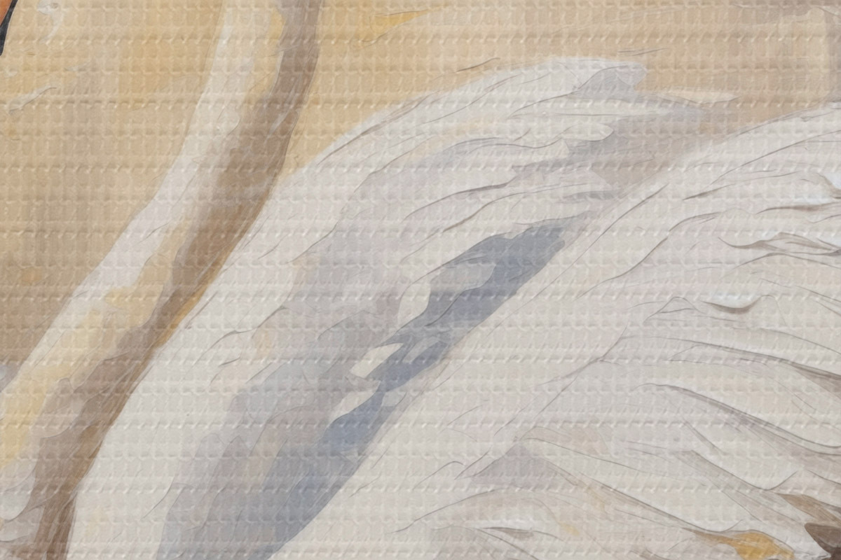 Selle lõuendi peenike niidipunus meenutab professionaalse kunstniku lõuendi pinda.